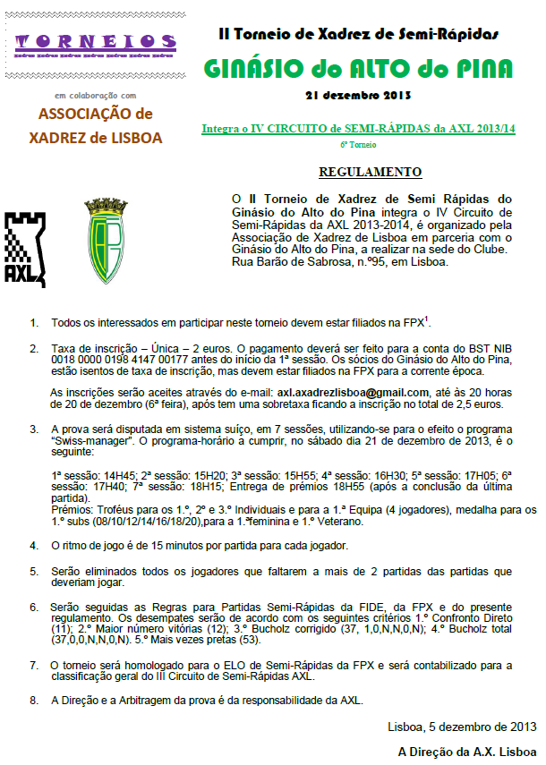 Torneio FIDE "Afonso Fernandes" - Classificação Final